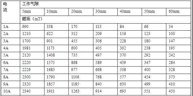 電磁鐵工作氣隙磁場是根據(jù)電磁感應(yīng)原理,電流源對磁場線包供直流電流,并由導(dǎo)磁回路聚磁產(chǎn)生磁場,調(diào)節(jié)氣隙大小,改變極面直徑,調(diào)整工作電流均可改變工作氣隙磁場的大小強弱。